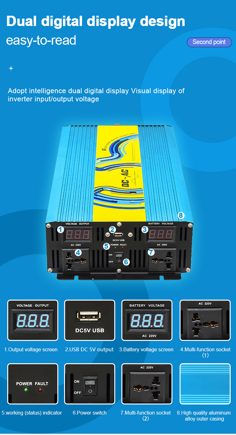 بفضل جهود موظفينا بما في ذلك الفنيين والمصممين ، فإن شركة Pine Energy (Shenzhen) Co. ، Ltd قادرة على تقديم شاحن التيار المتردد بموجة جيبية نقية بقدرة 3000 وات تيار متردد 12 فولت 24 فولت 48 فولت إلى تيار متردد 220 فولت مع شاشة LCD رقمية للجمهور . 3000w Pure Sine Wave Inverter Ac Charger Dc 12v 24v 48v to Ac 220v Power Inverter with Digital Lcd Display بسعر معقول وأداء ممتاز وجودة ممتازة ، وقد حاز على اعتراف واسع من العملاء. ستعمل شركة Pine Energy (Shenzhen) Co. ، Ltd بشكل كامل على الفكرة المهمة المتمثلة في "الجودة أولاً والعميل قبل كل شيء" وتواكب العصر لتعزيز قدرات الابتكار لشركتنا. سوف نتقدم ببسالة ونحقق هدفنا في أن نكون المؤسسة الرائدة في السوق العالمية.