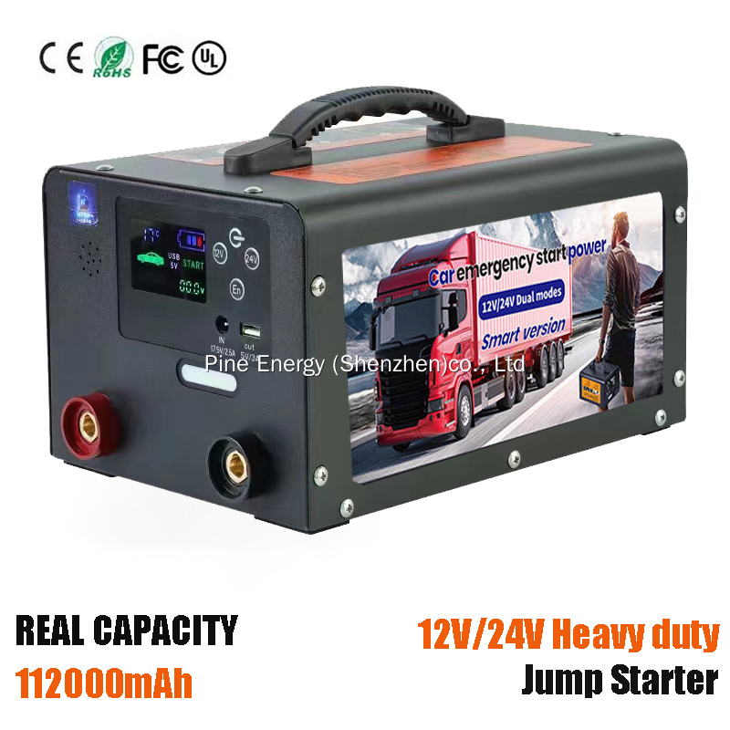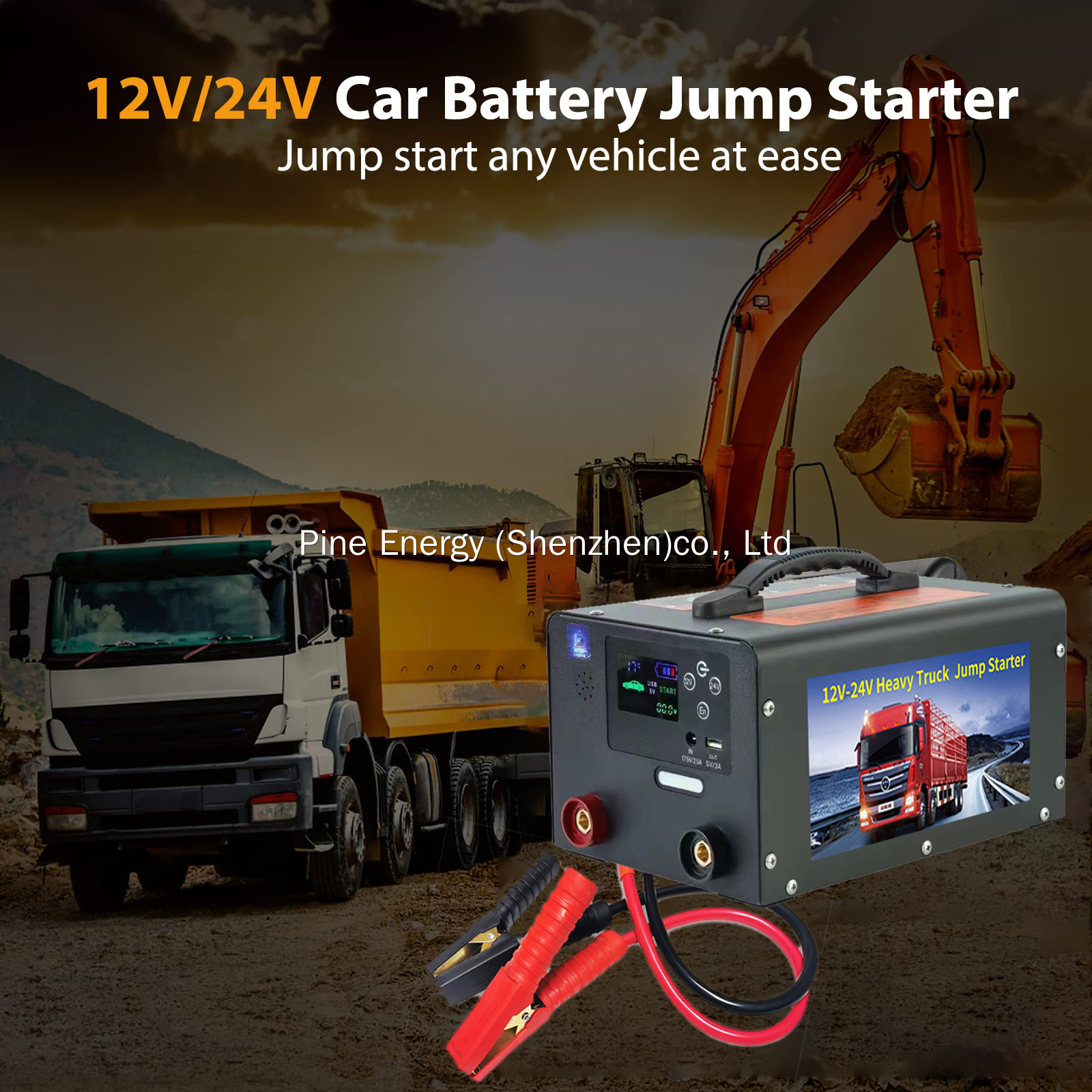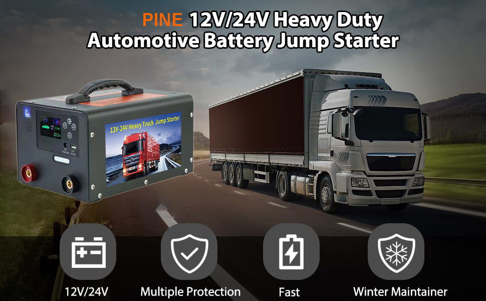 [ Мощное пусковое устройство для аккумулятора ] - самое мощное пусковое устройство Pine для тяжелых условий эксплуатации на 12 и 24 В с пиковым пусковым током 3000 А (для ВСЕХ бензиновых и дизельных двигателей); может автоматически определять автомобили на 12 В и 24 В и переключать пусковое напряжение; до 40 пусков на одной зарядке