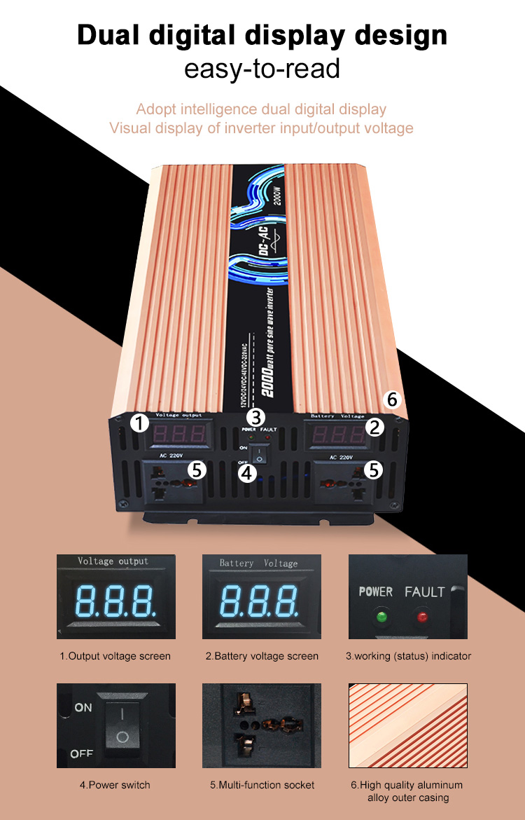 company. Advanced pure sine wave technology provides quality AC equivalent to grid power which will protect and extend the life of your electronics and appliances. With its quiet and high inductive loads, there are no strange buzzing sounds when your electronics are turned on and allow them to run smoother, cooler, and quieter.