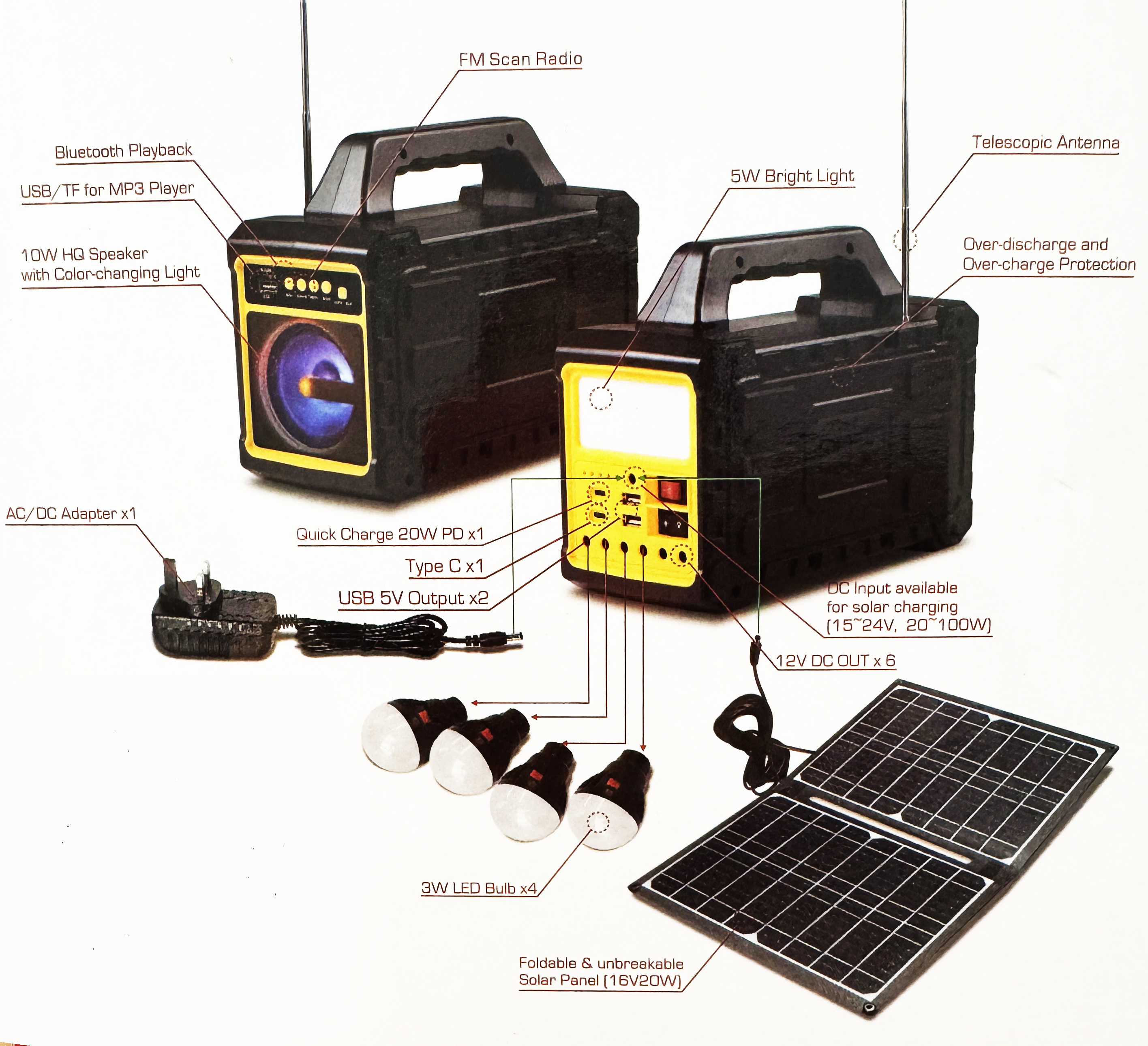 10,000mAh polymer battery powers lamps + phones for 8 hours, with solar priority charging cutting energy costs by 60% vs. generators.